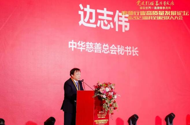 中華慈善總會(huì)秘書長(zhǎng)邊志偉致辭,祝賀盈科律師事務(wù)所在2022??Global??200全球律師人數(shù)排名中位列第一這一榮譽(yù)成就。他提到,2016年頒布施行了慈善法,對(duì)促進(jìn)我國(guó)慈善事業(yè)法治化、規(guī)范化、專業(yè)化發(fā)揮了重要作用。中國(guó)律師行業(yè)參與各項(xiàng)慈善事業(yè),心懷法治信仰,傳遞公益力量。當(dāng)前中華慈善總會(huì)目前在全國(guó)擁有401個(gè)會(huì)員單位,逐步形成了一個(gè)遍布全國(guó)、規(guī)模龐大的慈善援助體系,構(gòu)成了推動(dòng)中國(guó)慈善事業(yè)發(fā)展的強(qiáng)大合力。在2021年與盈科律師事務(wù)所簽訂雙方戰(zhàn)略合作協(xié)議,開啟了長(zhǎng)期、穩(wěn)定、深入的合作歷程。希望盈科與中華慈善總會(huì)繼續(xù)緊密合作,共同推動(dòng)我國(guó)慈善事業(yè)高質(zhì)量發(fā)展。