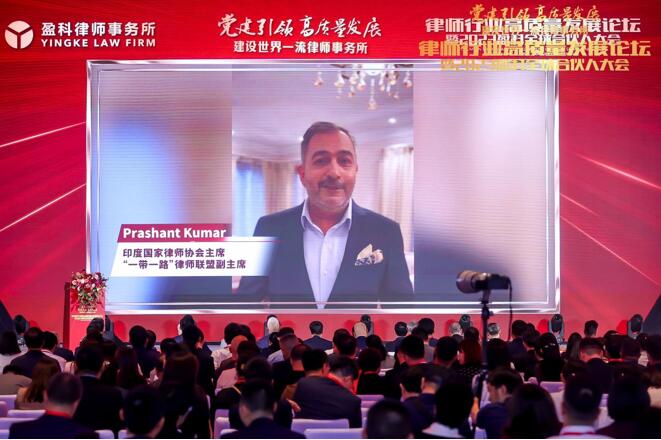 印度國(guó)家律師協(xié)會(huì)主席,“一帶一路”律師聯(lián)盟副主席??Prashant??Kumar通過(guò)線上致辭形式對(duì)盈科召開黨建引領(lǐng),高質(zhì)量發(fā)展,建設(shè)世界一流律師事務(wù)所——律師行業(yè)高質(zhì)量發(fā)展論壇暨2023盈科全球合伙人大會(huì)表示祝賀。他提到,盈科擁有覆蓋全球的法律服務(wù)網(wǎng)絡(luò),可以增強(qiáng)對(duì)各國(guó)不同文化和法律工作的了解,在盈科品牌下的影響,各地律所緊密合作,為法律服務(wù)提供了巨大的價(jià)值。最后他預(yù)祝各位律師能在論壇上愉快的交流、探討業(yè)務(wù),共同為全球法律服務(wù)進(jìn)步貢獻(xiàn)力量。