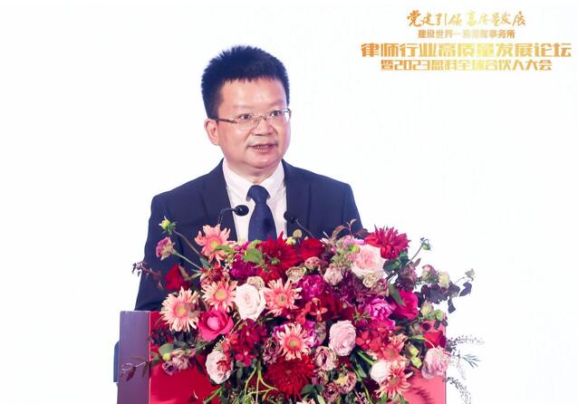 西南政法大學(xué)黨委常委、副校長(zhǎng)袁永新在致辭中提到,很高興受邀參加此次大會(huì),經(jīng)過(guò)二十余載穩(wěn)步發(fā)展,盈科在“黨建引領(lǐng),建設(shè)世界一流律師事務(wù)所”的理念指引下,于2022年發(fā)展成為全球規(guī)模最大的律師事務(wù)所,黨的報(bào)告將“堅(jiān)持全面依法治國(guó),推進(jìn)法治中國(guó)建設(shè)”單獨(dú)作為一部分,對(duì)全面推進(jìn)依法治國(guó)提出了任務(wù)和要求,西南政法大學(xué)作為中國(guó)法治人才教育培養(yǎng)重鎮(zhèn),目前,西南政法大學(xué)正深入推進(jìn)“雙一流”建設(shè)“311”工程,朝著實(shí)現(xiàn)“特色鮮明、優(yōu)勢(shì)突出的世界一流大學(xué)”宏偉目標(biāo)而奮力邁進(jìn)。2021年,西南政法大學(xué)與盈科律師事務(wù)所簽訂戰(zhàn)略合作框架協(xié)議,雙方開啟全方位戰(zhàn)略合作,這體現(xiàn)了法學(xué)教育院校和律師業(yè)界在黨的法治思想指導(dǎo)下,以開闊胸襟、精思睿智去落實(shí)立德樹人根本任務(wù)的共同使命擔(dān)當(dāng),雙方戰(zhàn)略合作的合作領(lǐng)域之廣、合作跨度之長(zhǎng)創(chuàng)造了西南政法大學(xué)辦學(xué)史上的多項(xiàng)先例,也開啟了西政辦學(xué)史上首次與律師界合作的新篇章。西南政法大學(xué)相信,通過(guò)合作雙方相互包容,良性互動(dòng),一定能夠?yàn)樘嵘髡嫱夥ㄖ稳瞬排囵B(yǎng)質(zhì)量、提升律師行業(yè)涉外法治法律服務(wù)水平做出應(yīng)有的貢獻(xiàn)。未來(lái),西南政法大學(xué)將攜手盈科,在黨的法治思想的指引下,不忘初心,牢記使命,踔厲奮發(fā),砥礪前行,共同為經(jīng)濟(jì)社會(huì)高質(zhì)量發(fā)展助力,共同為法治中國(guó)建設(shè)添磚加瓦。