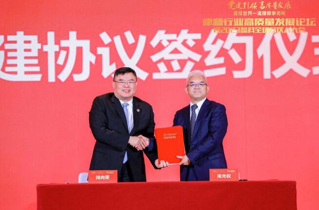 大會(huì)現(xiàn)場(chǎng)舉行清華大學(xué)法學(xué)院與盈科律師事務(wù)所涉外法治人才協(xié)同培養(yǎng)創(chuàng)新基地共建協(xié)議簽約儀式。
