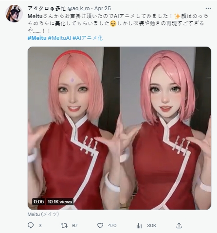 在市場層面,“AI動漫”功能迅速成收獲了許多網(wǎng)紅、二次元Cosplay愛好者和寵物愛好者的喜愛。多位行業(yè)KOL在Twitter、Tiktok、 Instagram、 Youtube等多個社交平臺上分享自己的“AI動漫”和“AI繪畫”作品,展示出多樣化的動漫變身、舞蹈、寵物等優(yōu)質(zhì)內(nèi)容,多篇內(nèi)容的播放量互動量破十萬次。