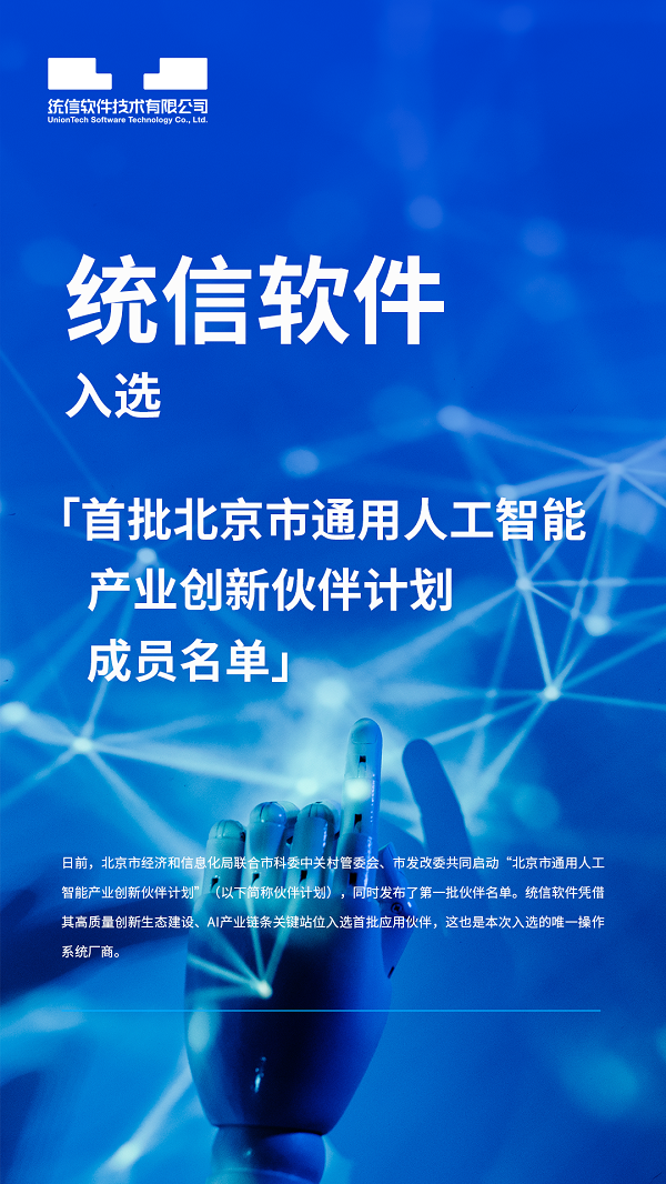 日前,北京市經(jīng)濟(jì)和信息化局聯(lián)合市科委中關(guān)村管委會(huì)、市發(fā)改委共同啟動(dòng)“北京市通用人工智能產(chǎn)業(yè)創(chuàng)新伙伴計(jì)劃”(以下簡稱伙伴計(jì)劃),同時(shí)發(fā)布了第一批伙伴名單。統(tǒng)信軟件憑借其高質(zhì)量創(chuàng)新生態(tài)建設(shè)、AI產(chǎn)業(yè)鏈條關(guān)鍵站位入選首批應(yīng)用伙伴,這也是本次入選的唯一操作系統(tǒng)廠商。