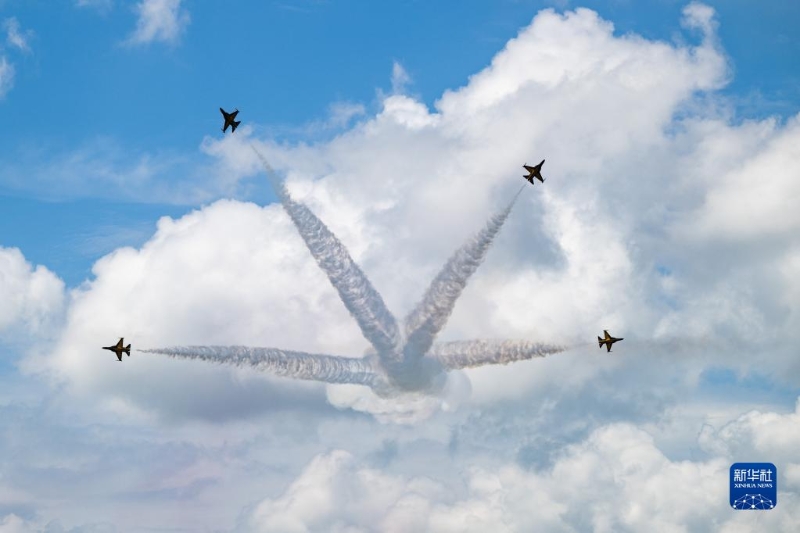 5月23日,在馬來(lái)西亞蘭卡威舉行的第16屆蘭卡威國(guó)際海事和航空展上,飛行表演隊(duì)進(jìn)行特技飛行表演。