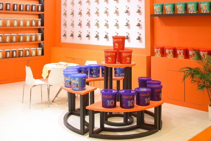 展會(huì)現(xiàn)場(chǎng)人潮涌動(dòng),而知味軒的展位廣受青睞。知味軒本次將拳頭產(chǎn)品之一“捌珍上品每日?qǐng)?jiān)果桶”搬到展會(huì)現(xiàn)場(chǎng)——制作了“PLUS版”的產(chǎn)品模型,放置于展位中央,與承重柱相連,象征了知味軒以“堅(jiān)果營(yíng)養(yǎng)為根基,以產(chǎn)品創(chuàng)新為支撐”的研發(fā)理念。同時(shí)其桶裝系列產(chǎn)品也進(jìn)行了詳細(xì)的展示,引來(lái)諸多堅(jiān)果愛好者駐足觀看、互動(dòng)咨詢。此外,知味軒精心設(shè)置了一面“堅(jiān)果實(shí)驗(yàn)室”——用以盛放全球六大洲優(yōu)質(zhì)堅(jiān)果,直觀展示原料的外形特點(diǎn),并向現(xiàn)場(chǎng)觀眾進(jìn)行科普及邀請(qǐng)?jiān)嚦云疯b,收獲一致的“美味”好評(píng)。知味軒還將代工產(chǎn)品和合作伙伴L(zhǎng)OGO進(jìn)行了陳列展示,大面的“業(yè)務(wù)獎(jiǎng)狀”側(cè)面突顯了知味軒在行業(yè)市場(chǎng)內(nèi)廣泛的知名度與受認(rèn)可度。