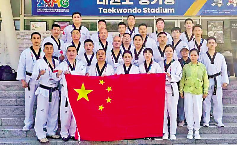 圖:李東憲與參加“2023亞太地區(qū)大師運(yùn)動(dòng)會(huì)”的兩岸選手合影留念。\受訪者供圖