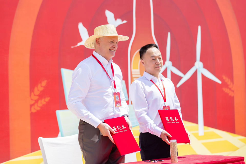 與江蘇省農(nóng)墾集團(tuán)有限公司副總經(jīng)理劉耀武(右)簽署戰(zhàn)略合作協(xié)議