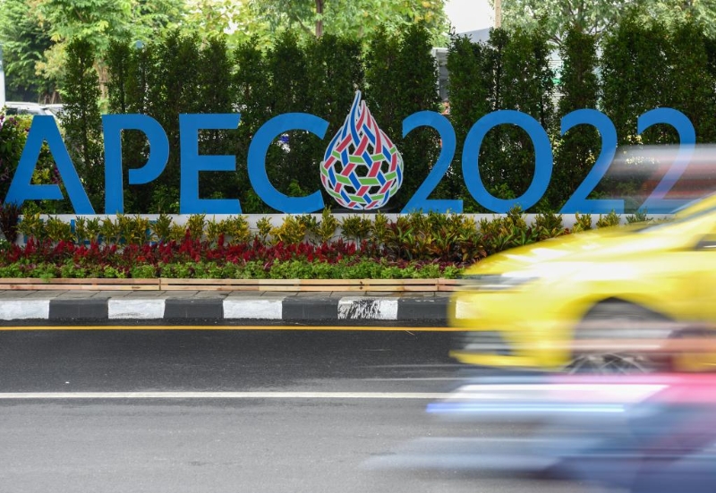 這是2022年11月14日在泰國首都曼谷街頭拍攝2022年APEC會議標識。新華社記者郭磊攝