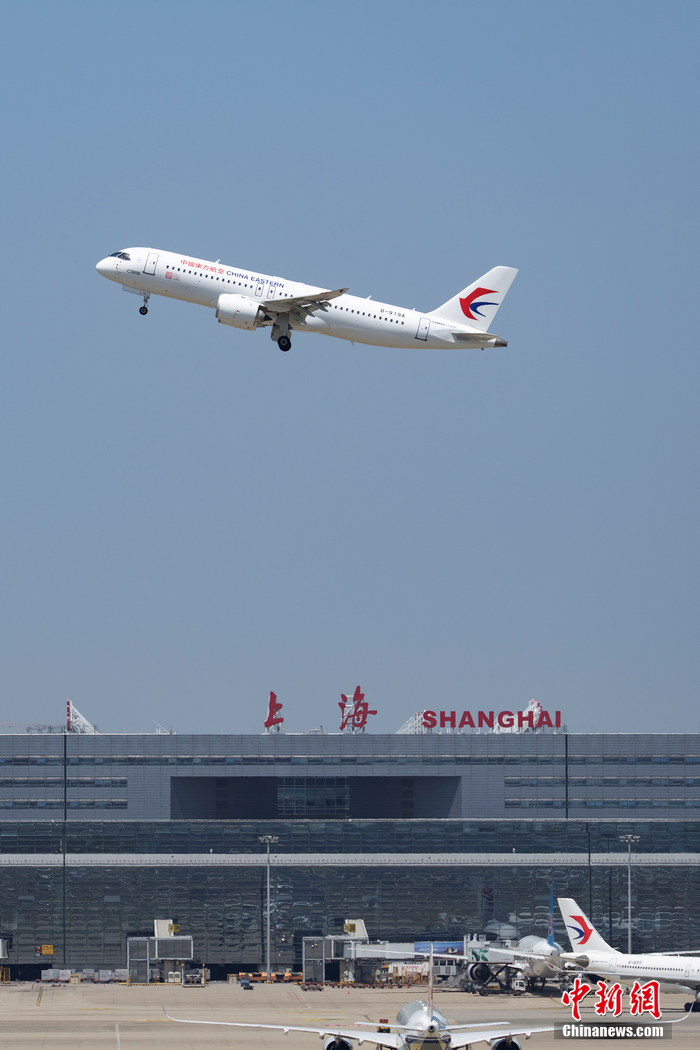 東航首架C919客機(jī)從上海虹橋國際機(jī)場起飛?!∫罅⑶?攝