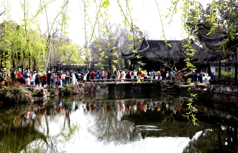 游客在江蘇省蘇州市古典園林拙政園觀光游玩(2023年3月15日攝)。新華社發(fā)(杭興微 攝)