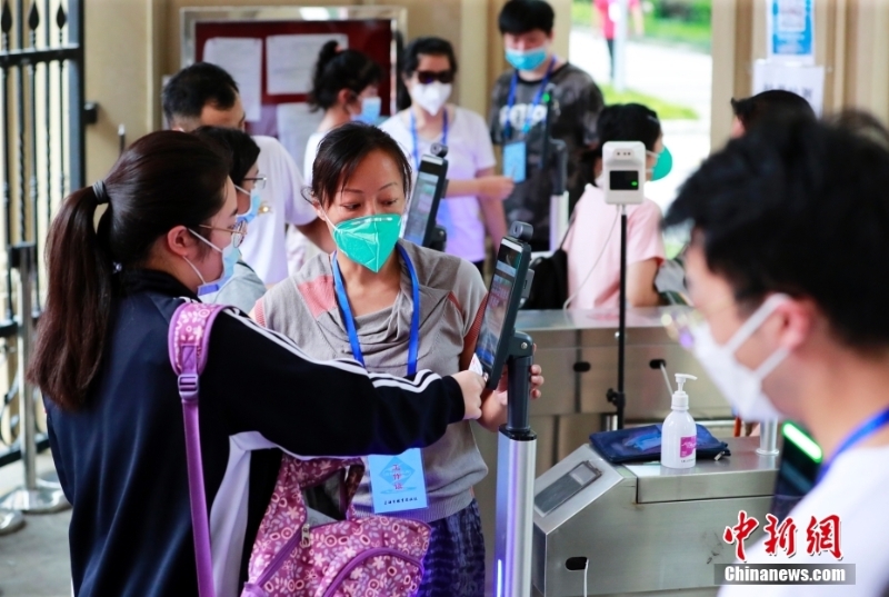 資料圖:考生在考點(diǎn)工作人員的指引下按防疫要求進(jìn)行相關(guān)查驗(yàn)。中新社記者 湯彥俊 攝