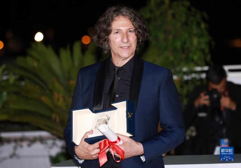 5月27日,在法國戛納,憑借《利益區(qū)域》獲得電影節(jié)評委會大獎(jiǎng)的英國導(dǎo)演喬納森·格雷澤展示獎(jiǎng)杯。