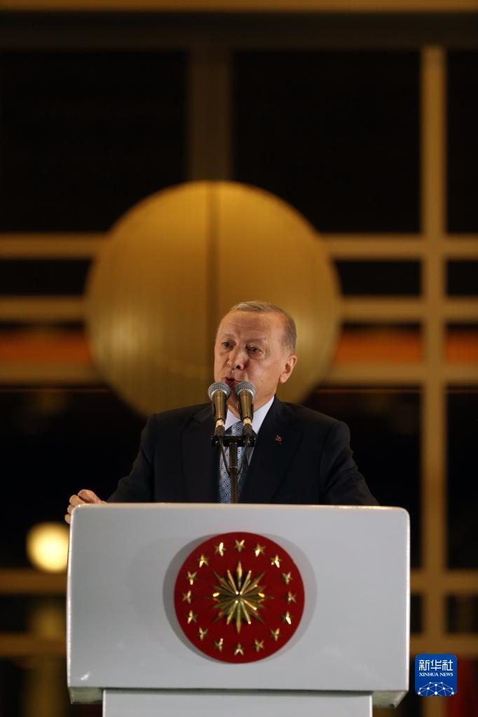 5月29日凌晨,土耳其總統(tǒng)埃爾多安在安卡拉發(fā)表講話。