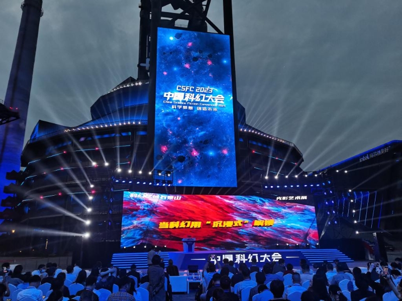 5月29日晚,2023中國(guó)科幻大會(huì)開(kāi)幕式現(xiàn)場(chǎng)。(主辦方供圖)