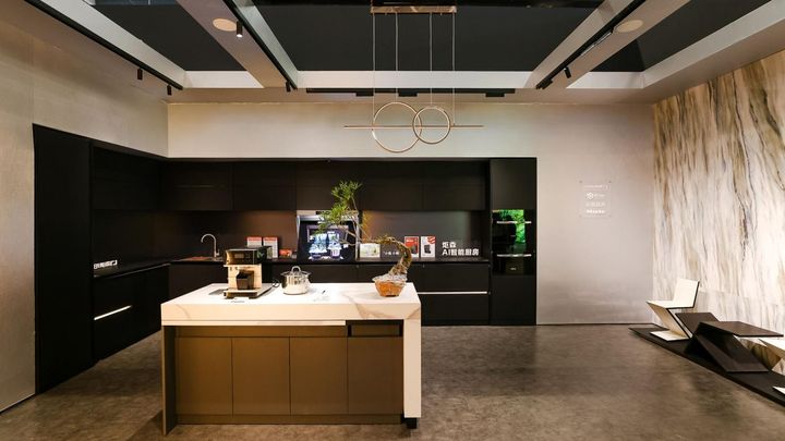 作為開(kāi)放式廚房設(shè)計(jì)的“悠然廚房”空間,由炬森AI智能廚房收納系統(tǒng),重構(gòu)廚房秩序美學(xué);德國(guó)百年品牌美諾Miele的獨(dú)立咖啡機(jī)系列,彰顯生活的品味與格調(diào);而集成島臺(tái)、餐桌、吧臺(tái)形態(tài)的左凡智能中島臺(tái),也在有限的空間內(nèi)對(duì)進(jìn)一步延展了廚房功能。