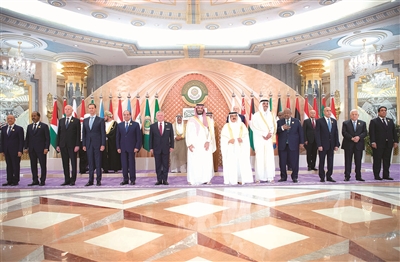 5月19日,阿盟峰會與會領(lǐng)導(dǎo)人在沙特阿拉伯合影。