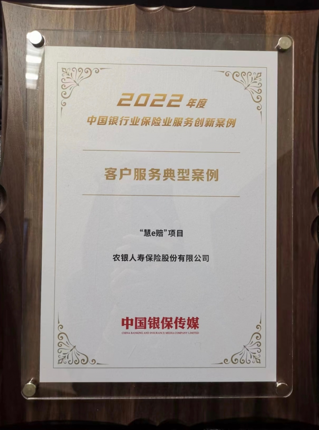 2023年3月14日,由中國銀行保險(xiǎn)傳媒股份有限公司主辦的“2023中國銀行業(yè)保險(xiǎn)業(yè)服務(wù)創(chuàng)新峰會”在北京順利召開。峰會上公布了“2022年度保險(xiǎn)業(yè)服務(wù)創(chuàng)新案例”評選結(jié)果,農(nóng)銀人壽依托科技創(chuàng)新傾力打造的“慧e賠”項(xiàng)目,成功入選“客戶服務(wù)典型案例”集,備受行業(yè)矚目。