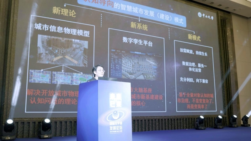 廣東省交通環(huán)境智能監(jiān)測與治理工程技術研究中心主任劉永紅作《元宇宙數(shù)字孿生基座與智慧城市》主題分享