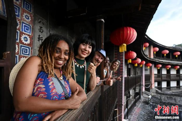美國(guó)知名藝術(shù)家代表團(tuán)參與“趣淘”漳州文化藝術(shù)周活動(dòng),成員參訪福建漳州二宜樓,體驗(yàn)土樓文化。張金川 攝