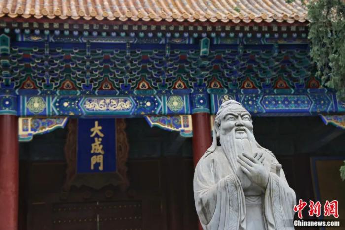 北京孔廟內(nèi)的孔子像??鬃蛹捌渌鶆?chuàng)立的儒家思想,對(duì)中國(guó)文化發(fā)展有著重要的影響。陳碩 攝