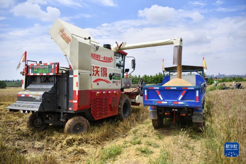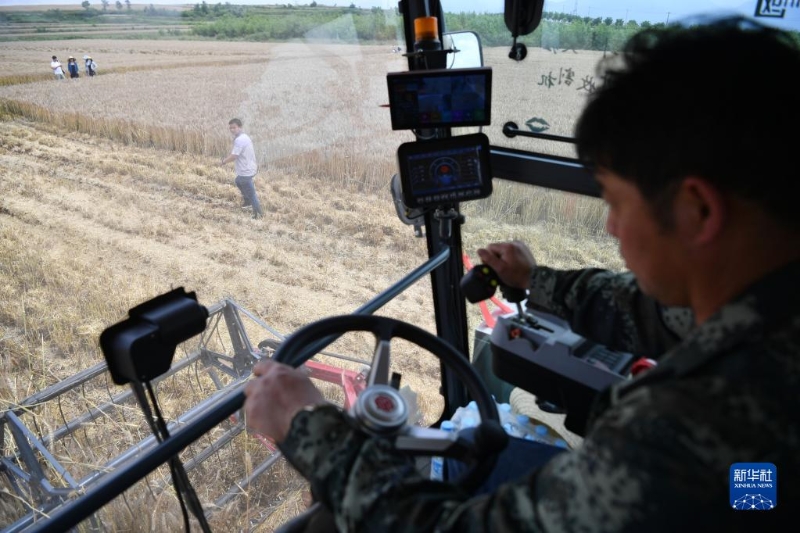 6月1日,農(nóng)機(jī)手駕駛收割機(jī)在西安市長安區(qū)王曲街道皇甫村的麥田內(nèi)作業(yè)。