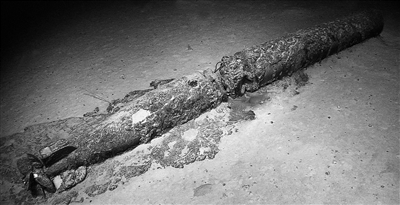 2018年3月5日,在澳大利亞附近海域的海底拍攝的二戰(zhàn)時美國海軍“列克星敦”號航母殘骸中的魚雷。 新華社發(fā)