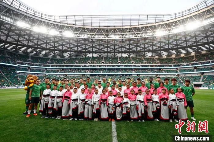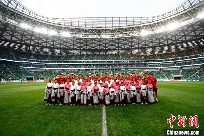 中新網(wǎng)北京6月2日電 俄金仁增、松保、才仁多杰、普布昂江、阿斌、西力才仁……6月2日晚的北京工人體育場,當(dāng)6名身著民族服飾,有著黝黑皮膚、明亮眼睛的藏族球童出現(xiàn)在賽場時,全場的目光都為之聚焦。