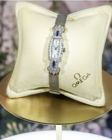2015年,佳士得曾上拍一枚與現(xiàn)場(chǎng)展品極為相似的歐米茄裝飾藝術(shù)風(fēng)格鉆石腕表,曾是民國(guó)財(cái)政部長(zhǎng)、四大家族之一的孔祥熙家族珍藏,成交價(jià)約7萬港幣。