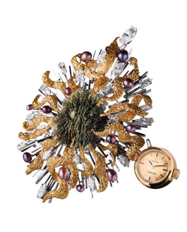 左:Gilbert Albert為1964年紐約世博會(huì)設(shè)計(jì)的歐米茄隕石寶石可拆卸項(xiàng)鏈表