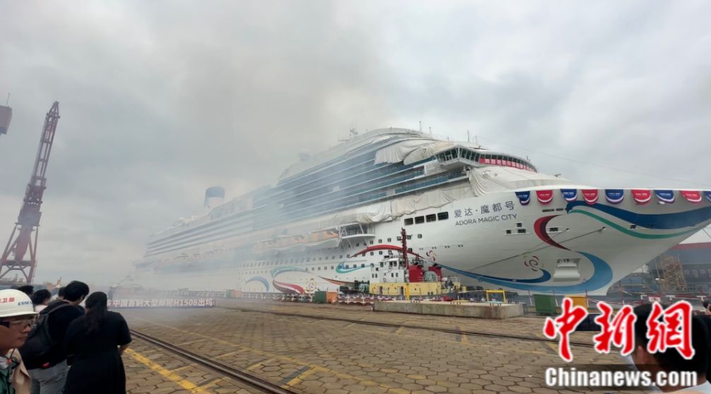 看,這艘身系“敦煌飛天彩帶”楚楚動人的我國首艘國產(chǎn)大型郵輪“愛達·魔都”號,今日盛裝出塢!