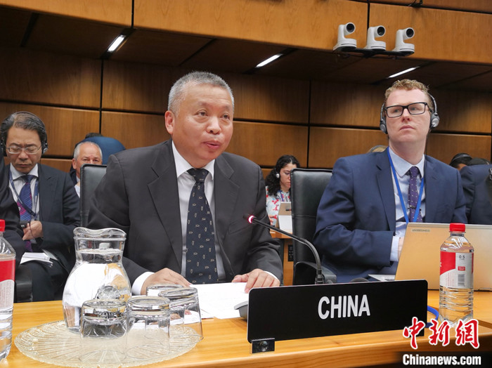 圖為張克儉發(fā)言。 中新社發(fā) 中國(guó)常駐維也納代表團(tuán)供圖