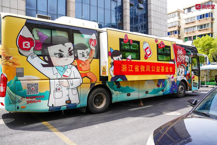 中午時(shí)分,浙江省血液中心的獻(xiàn)血車已經(jīng)停靠在微拍堂總部樓下。未到活動(dòng)開(kāi)始時(shí)間,這里早早地就排起了有序的長(zhǎng)隊(duì)。