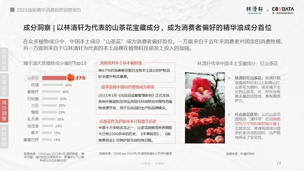 進入爆發(fā)期的林清軒并沒有坐等品牌口碑變現(xiàn),而是在不斷的產(chǎn)品和科研迭代中加深護城河。在成分上,林清軒選用具有中國特色的高山紅山茶花。山茶科植物生命力頑強,海拔800米之上高山紅山茶,極為稀缺,抗氧化活性成分是低海拔紅山茶花的 1.5倍左右[1]。林清軒錨定中國成分,在本土好成分的加持下,持續(xù)通過技術(shù)創(chuàng)新深挖高山紅山茶花的抗老修護功效,給消費者帶來安全有效的護膚體驗。