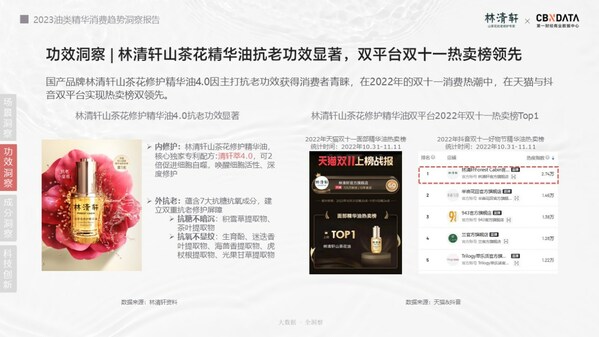 值得注意的是,這也是繼2022年雙十一、2023年3·8煥新周之后,林清軒山茶花精華油三度蟬聯(lián)天貓品類熱賣第一。至此,林清軒又一次用銷量和殺出外資品牌重重包圍的排名,強勢宣告了品牌的硬核實力。