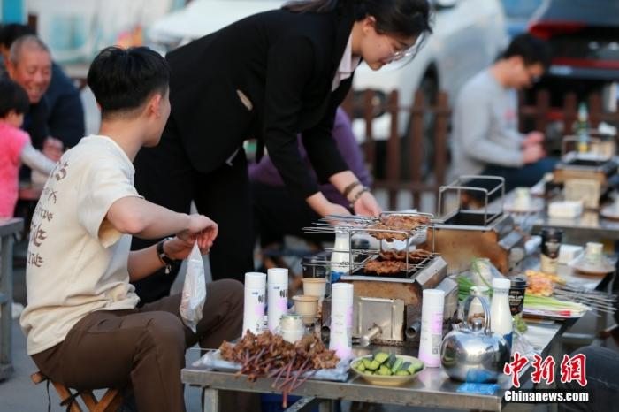資料圖:山東淄博,食客正在享用燒烤。 中新社記者 梁犇 攝