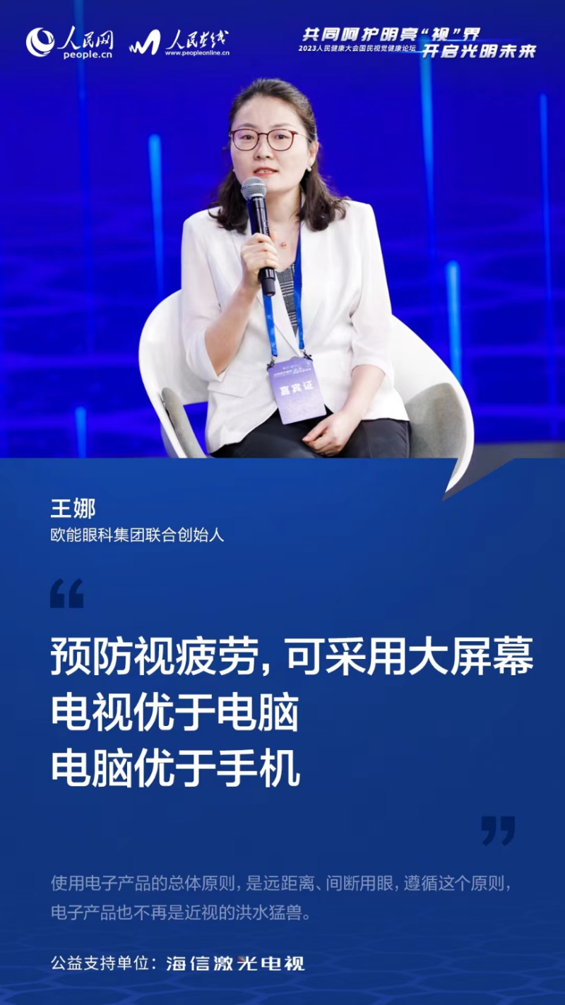 專家們還對青少年使用電子產(chǎn)品給出了具體建議。歐能眼科集團聯(lián)合創(chuàng)始人、重慶市婦幼衛(wèi)生學會兒童心理行為與發(fā)展專委會視覺行為發(fā)育學組副組長王娜提到,使用電子產(chǎn)品的總體原則,是遠距離、間斷用眼,遵循這個原則,電子產(chǎn)品也不再是近視的洪水猛獸。她建議道,“預防視疲勞,可采用大屏幕。電視優(yōu)于電腦,電腦優(yōu)于手機”。
