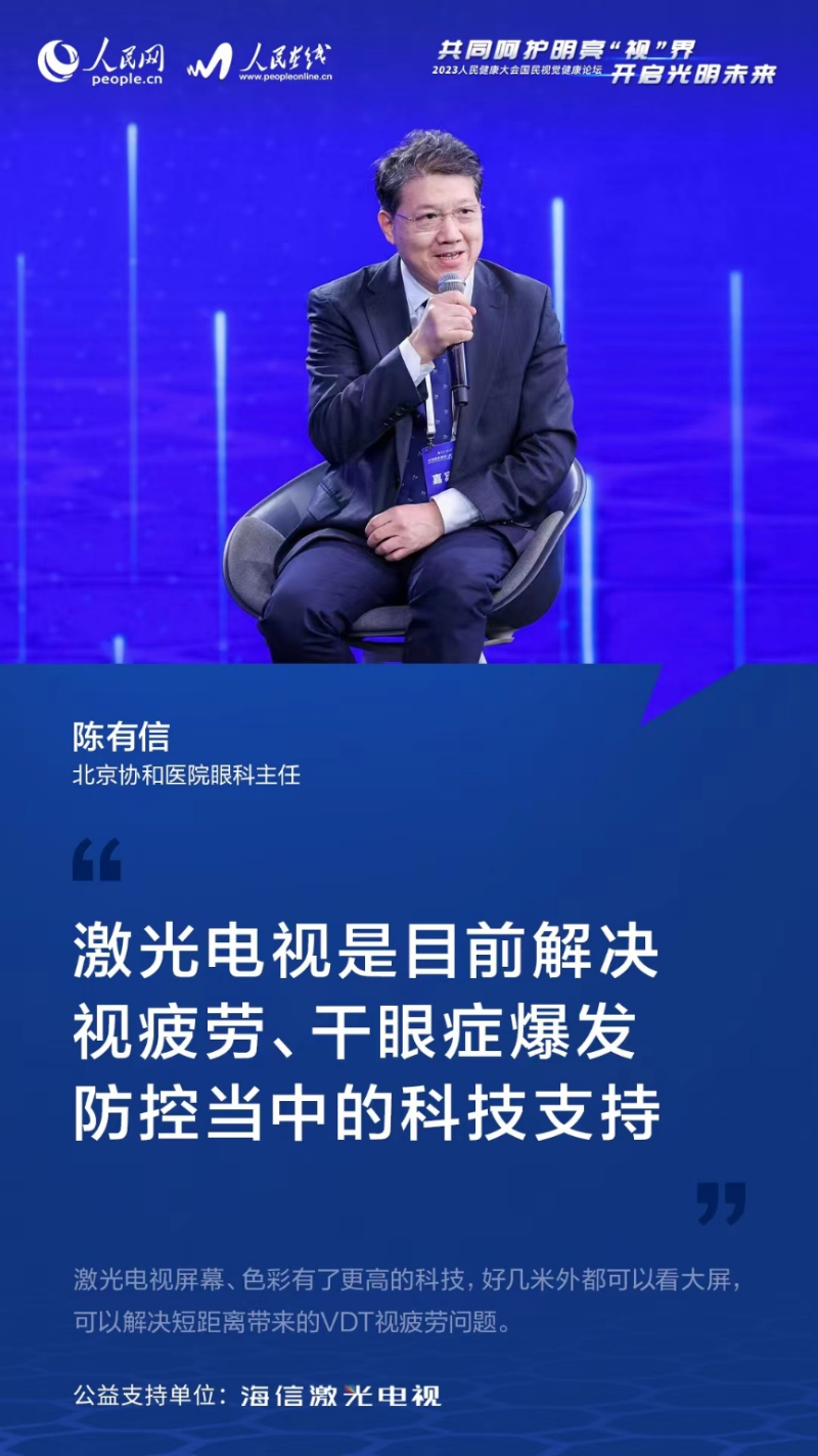 在談及更加護眼的顯示產(chǎn)品時,北京協(xié)和醫(yī)院眼科主任陳有信對激光電視的護眼設計深表認可:“激光電視做得非常好,它將光反射到屏幕,而擁有更高科技的屏幕使畫面的色彩、光強度、觀影距離都合適,這種類型的電視及顯示屏是我們目前解決視疲勞、干眼癥爆發(fā)防控當中的科技支持?!?/p>