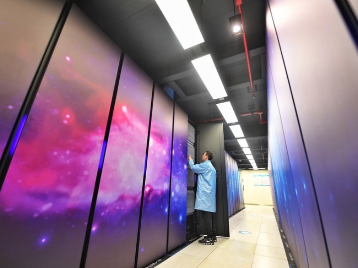 2023年2月14日,國(guó)家超級(jí)計(jì)算成都中心科研人員在巡檢機(jī)房設(shè)備。新華社記者劉坤 攝