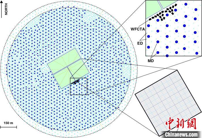 高海拔宇宙線觀測站(“拉索”)的構成與布局示意圖?!≈锌圃焊吣芩?供圖