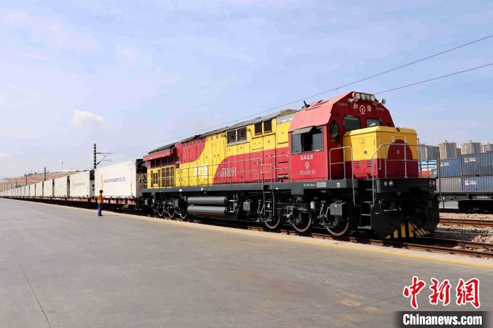 圖為一列中老鐵路“瀾湄快線”國際貨物列車?!≡S崇官 攝