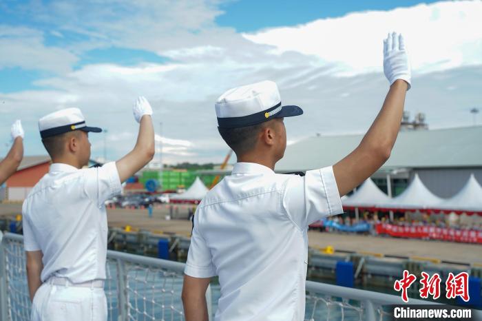 當(dāng)?shù)貢r(shí)間上午9時(shí),文方在摩拉港碼頭舉行了隆重的歡送儀式。中國(guó)駐文萊大使肖建國(guó)、武官戴祁林等,以及中資機(jī)構(gòu)代表、華僑華人代表、文萊海軍官兵代表等200余人位碼頭送行。