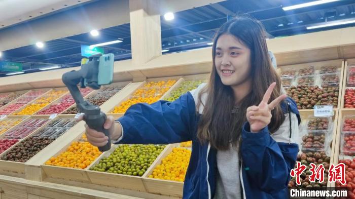 2023年1月,蔡如瑜在一家商超進(jìn)行短視頻拍攝?!∈茉L者供圖