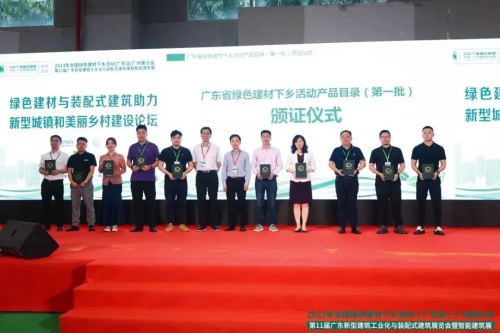 在會(huì)上,進(jìn)行了廣東綠色建材下鄉(xiāng)活動(dòng)入庫企業(yè)目錄發(fā)布及頒證儀式,固德威成為首批入庫企業(yè),光電建材進(jìn)入推廣產(chǎn)品名錄!