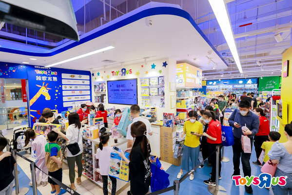 六一當(dāng)天,玩具反斗城店內(nèi)人頭攢動(dòng)