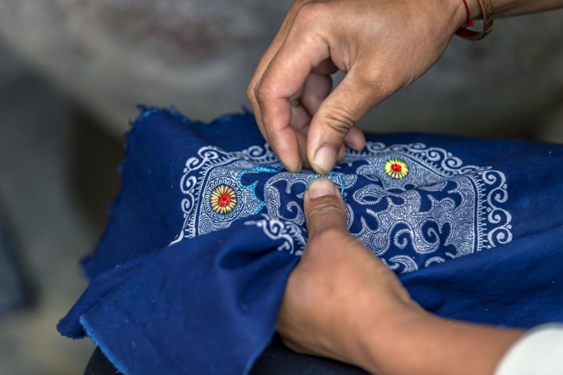 畢節(jié)市黔西縣新仁苗族鄉(xiāng)化屋村是苗族聚居地,民族特色鮮明,被命名為“中國民間文化藝術(shù)之鄉(xiāng)”。苗繡、蠟染等成為這個村重點發(fā)展的特色產(chǎn)業(yè)。紅色、綠色、藍色……飛針走線五彩繽紛;繡、插、點、挑……制作手法千變?nèi)f化的苗繡在2006年首批列入國家級非物質(zhì)文化遺產(chǎn)代表性項目名錄。