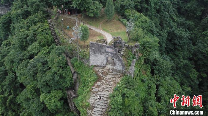 2020年7月航拍世界遺產(chǎn)——遵義海龍屯的飛龍關(guān)。中新社記者 瞿宏倫 攝