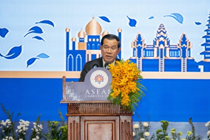 圖為2022年11月13日在柬埔寨首都金邊拍攝的柬埔寨首相洪森出席東盟峰會的資料照片。新華社記者朱煒攝