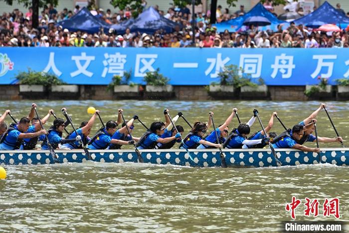 當天,粵港澳大灣區(qū)(廣東)龍舟邀請賽現(xiàn)場鼓聲雷動,只見龍舟兩旁浪花激揚,劃手們配合著鼓點的節(jié)奏,紛紛加足馬力沖向終點?!皟?nèi)地龍舟隊伍實力很強,個個是高手,獲益良多。”王忠巡稱。