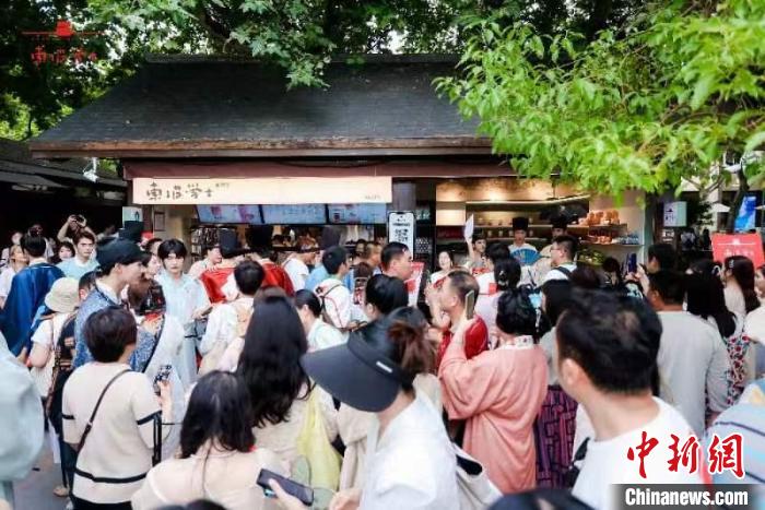 當天,記者觀察到,“東坡學士”主題店前,市民游客絡繹不絕。他們中,有的排隊購買特色茶飲,有的進店欣賞文創(chuàng)周邊,有的駐足拍照打卡,氛圍熱鬧。