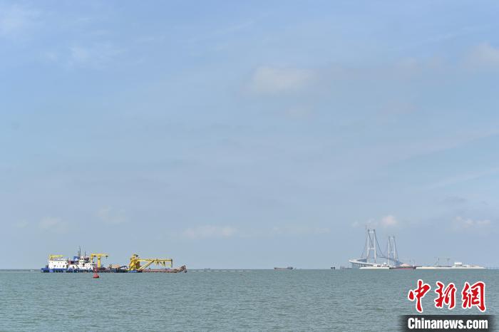 隧道基槽開挖是沉管管節(jié)安裝的第一道工序?!吧钪型ǖ篮5姿淼牢挥谥榻?,水文泥沙復(fù)雜、基槽回淤?gòu)?qiáng)度大?!必?fù)責(zé)沉管隧道基槽開挖的中交廣航局深中通道項(xiàng)目部常務(wù)副經(jīng)理?xiàng)罹谤i說,自2019年起至今,共完成了3500萬立方米的疏浚作業(yè),完成了約26.5萬立方米的海底礁石破除。挖出來的泥沙,可以裝滿14000個(gè)國(guó)際標(biāo)準(zhǔn)游泳池。