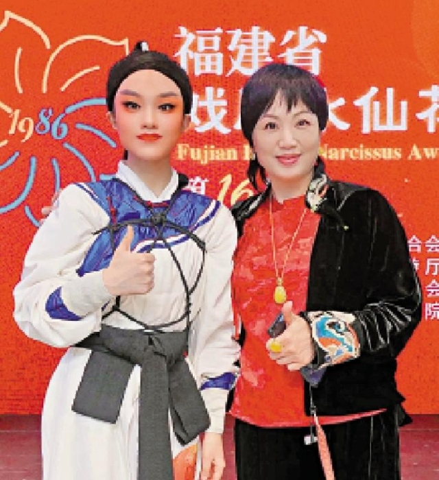 圖:廈門歌仔戲研習(xí)中心副主任莊海蓉(右)與學(xué)生楊婉婷合影。